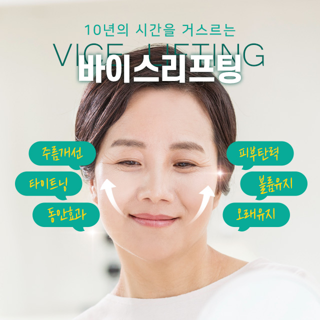 깊은팔자주름의 경우 자가관리법만으로는 과거의 모습을 되돌리는데 한계가 있어 의학적인 방법을 통해 개선하는 것이 보다 현명한 자세라고 할 수 있는데요 기존의 여타 시술들의 결과가 미미하셨던 경우 또는 안면거상술과 같이 절개하는 과정이 부담스러우시다면 지금부터 소개해드리는 바이스리프팅을 주목해보시길 바랍니다